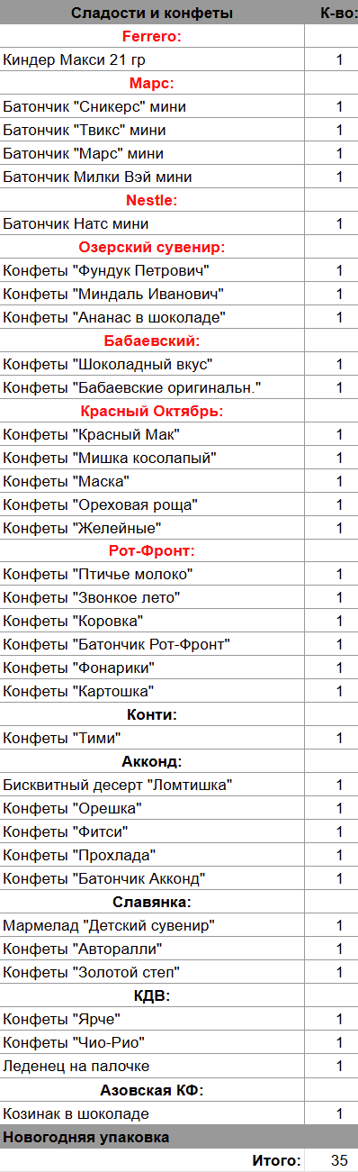 Кол-во сладостей: 35 шт.