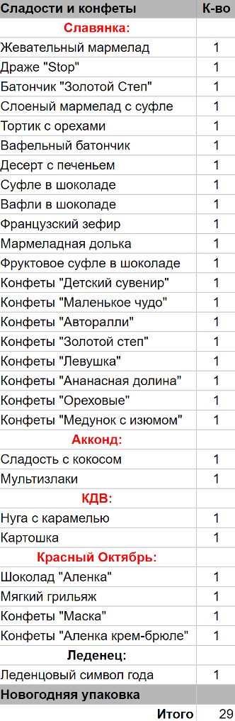 К-во сладостей: 29 шт.