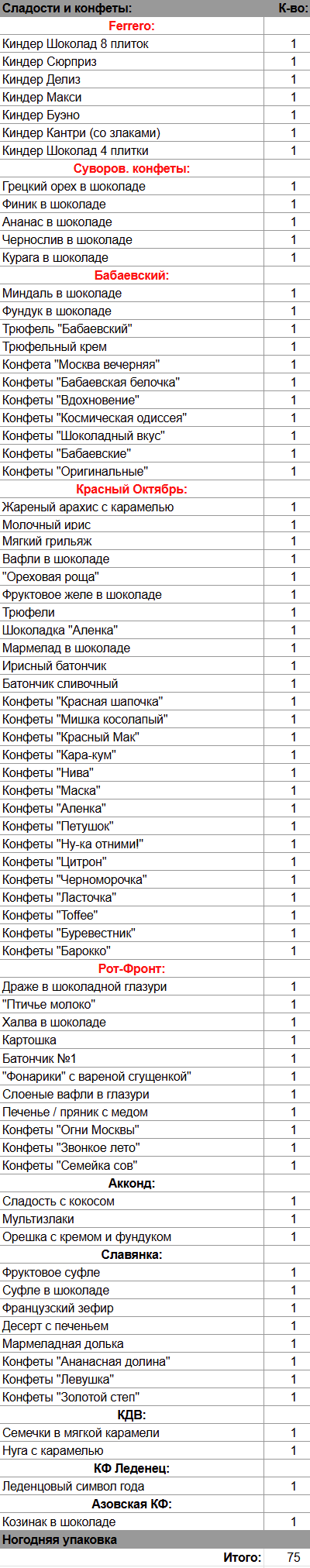 Интернет-магазин сладких новогодних подарков работает от производителя напрямую, за счет чего мы убираем посредников и снижаем цены на детские новогодние подарки. Кроме того, наша логистика позволяет доставить заказ практически в любой город за наш счет. Все цены на сладкие подарки актуальны