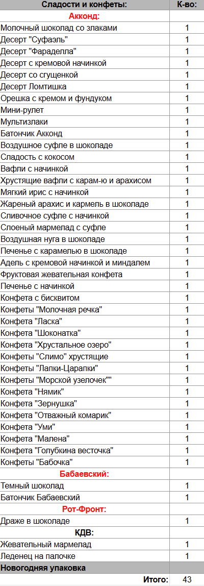 Интернет-магазин сладких новогодних подарков работает от производителя напрямую, за счет чего мы убираем посредников и снижаем цены на детские новогодние подарки. Кроме того, наша логистика позволяет доставить заказ практически в любой город за наш счет. Все цены на сладкие подарки актуальны